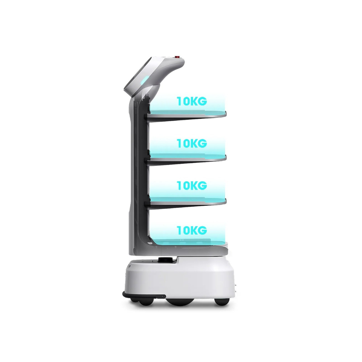 Cadebot, restoran ve kafe gibi hizmet sektörleri için özel olarak geliştirilmiş yapay zeka destekli bir garson robotudur. Kullanıcı dostu yönetim platformu sayesinde, siparişlerin alınmasından servis yapılmasına kadar birçok süreci optimize eder. Entegre sensör teknolojisi ile engellerden kaçınma ve çarpışmaları önleme özelliklerine sahip olan Cadebot, müşterilere hızlı ve güvenli hizmet sunar. Çoklu sensör füzyon teknolojisi sayesinde zemin tanıma ve çevresel engelleri aşma yetenekleriyle donatılmış olan bu robot, işletmelerin operasyonel verimliliğini artırarak müşteri memnuniyetini en üst düzeye çıkarır.